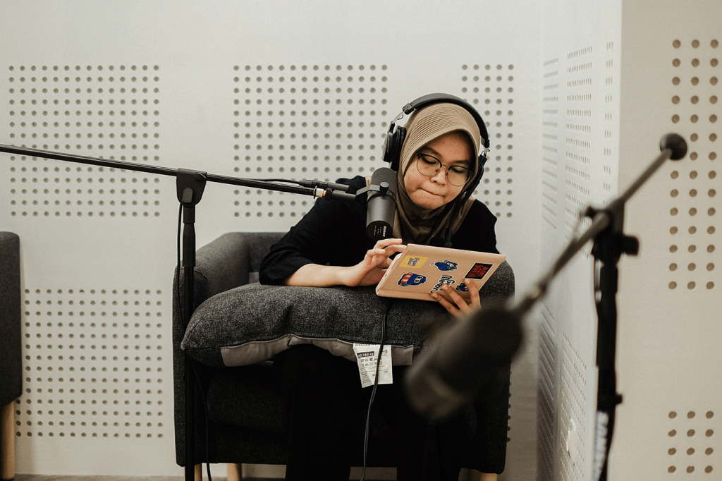 Taking on the challenge of lending my voice to “Ada Hantu di Sekolah” has been a refreshing experience for me. It has allowed me to step out of my comfort zone and explore new opportunities beyond my usual work with romance podcasts. The memorable moments are when I get to embody characters like the Devil, Grandfather, and Gendruwo – it’s a real challenge. Imagine having to produce screams, hoarse sounds, and gasps for breath; Each character should be convincingly brought to life in every episode.